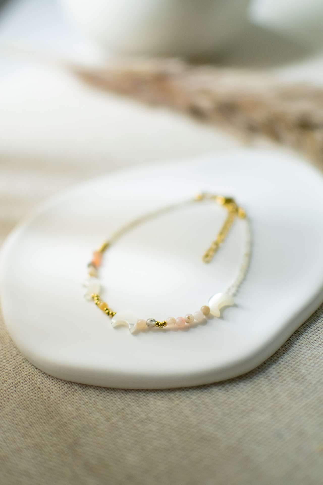 Bransoletka personalizowana z kamienia księżycowego, amazonitu i masy perłowej
